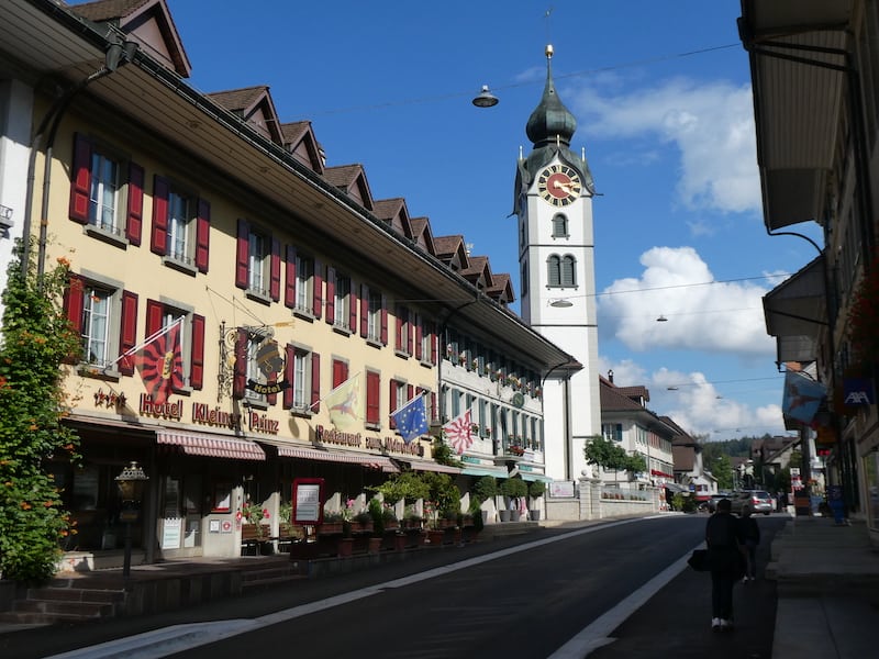In Huttwil stellt die Flyer-Fabrik einen kostenlosen Stellplatz zur Verfügung. Zweckmässig, aber nicht sonderlich attraktiv. Wir benützen ihn nur für ein Mittagsschläfchen. Huttwil gilt als bedeutender Marktort zwischen Bern und Luzern und glänzt auch mit einigen schmucken Häusern. Weiter geht unsere Fahrt via Sursee, Emmenbrücke (Stau!!) nach Küsnacht.