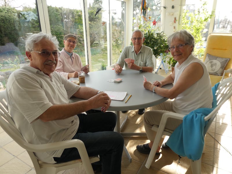 Kartenspielen im Wintergarten