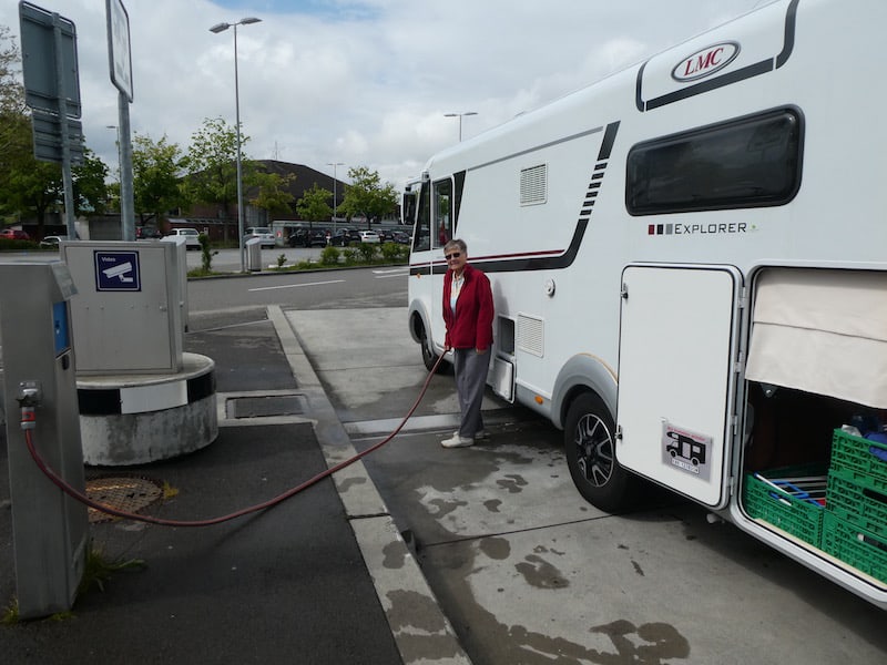Beim Autobahnrestaurant Grauholz gibt es eine gute V&E Station. Dort füllen wir frisches Trinkwasser in den Tank.