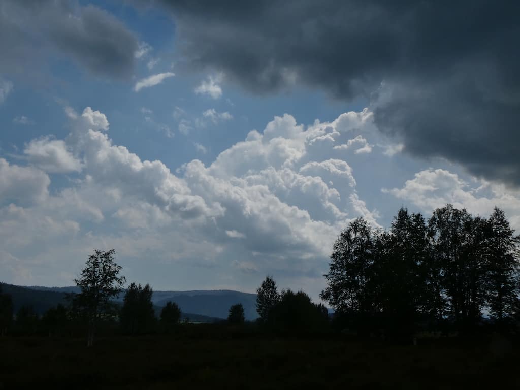 Hier befindet sich das grösste zusammenhängende Hochmoorgebiet der Schweiz, so jedenfalls wird es beworben. Wir machen uns gleich auf die Torfpfad-Rundwanderung. Das Wetter ist schwülwarm, obwohl wir uns hier auf 1000 m.ü.M. bewegen. Gewitterwolken grummeln über uns, aber es bleibt trocken.