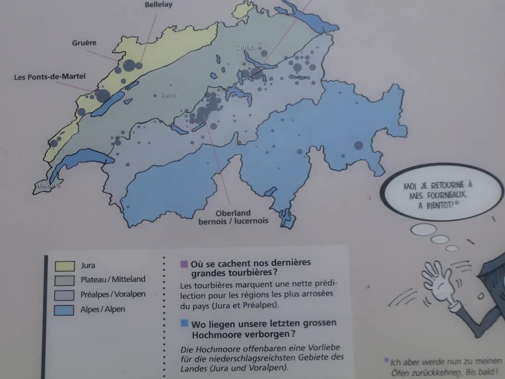Auf dem (vorwiegend französisch) beschilderten Pfad wird die einstige grosse Bedeutung von Torf bis ins 20. Jahrhundert erklärt. Heute ist das Gebiet natürlich geschützt.