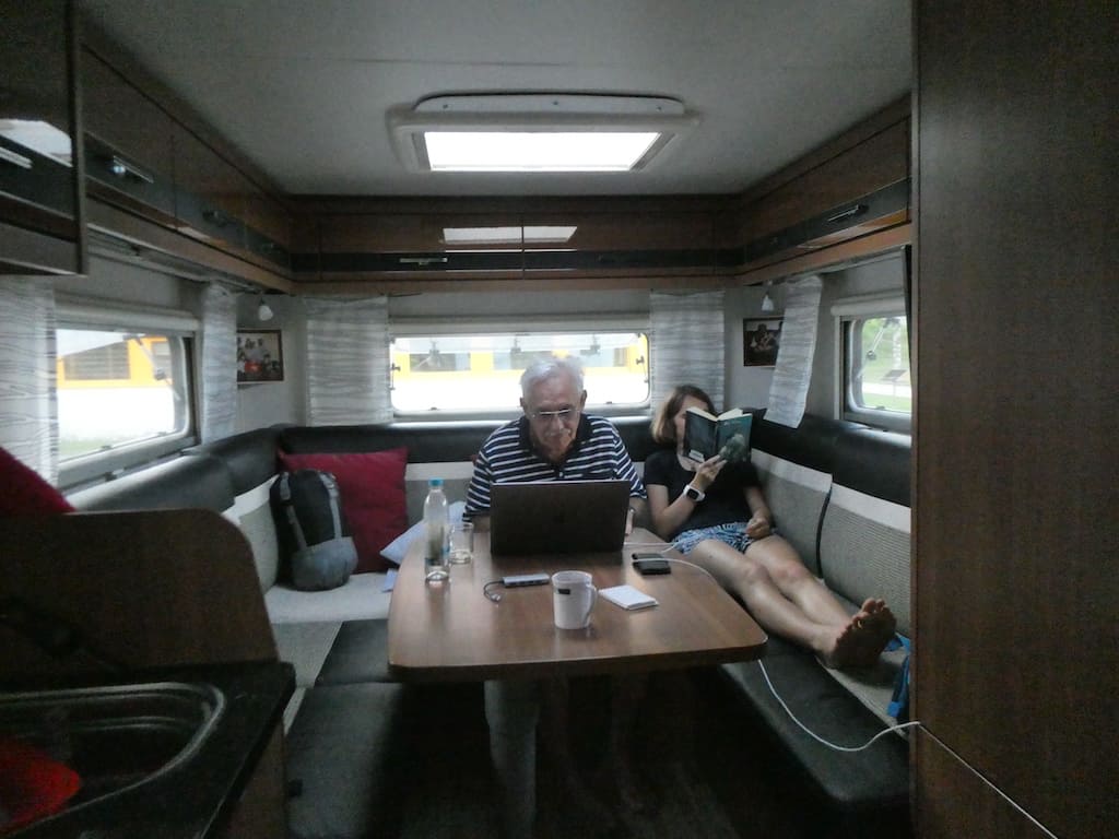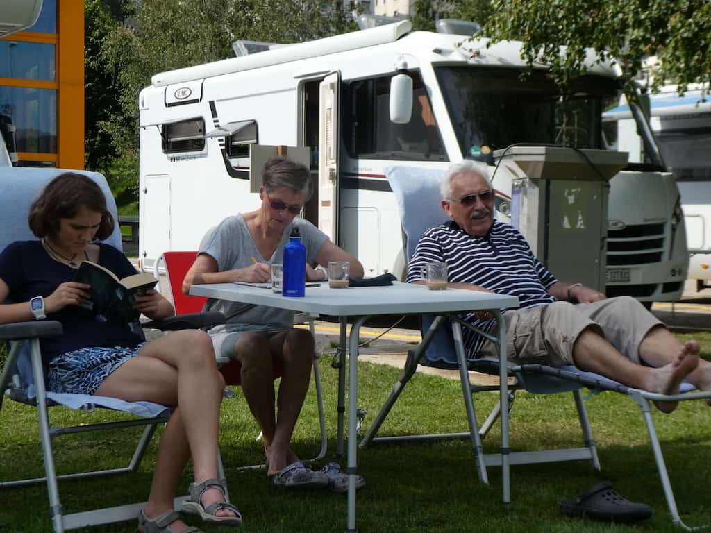 Zurück beim Mobi bleibt noch genug Zeit zum Relaxen und Lesen. Sonne und bedrohliche Wolken wechseln sich ab. Aber es bleibt trocken.