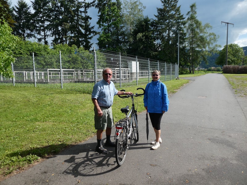 Plötzlich taucht Peter per Fahrrad auf. Er will uns auf dem Weg zu seiner wöchentlichen Kartenrunde einen kurzen Besuch abstatten.