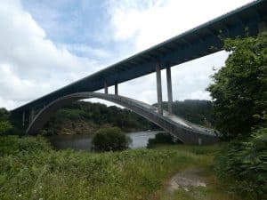 Wir kommen über die „Pont du Morbihan“ über den Fuss „La Vilaine“. Unmittelbar danach kommt der Rastplatz „Marzan“, der einen Ausblick auf Brücke und Fluss verspricht.