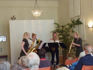 Später besuchen wir im Podium ACANTHUS ein Saxophon-Konzert von 4 Musikstudentinnen aus Zwolle. Mit Kompositionen von Händel über Lago bis Piazzolla begeistern diese 4 jungen Frauen uns und weitere 50 Besucher.