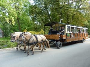 Ein Kutscher mit einem weissen Rauschebart ist mit Touristen unterwegs.