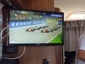 Um 15 Uhr sind wir pünktlich im Mobi, denn Michael will heute das Formel1 Autorennen nicht verpassen.