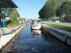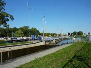 Als das vorüber ist, laufen wir noch zur Schleuse, ganz in unserer Nähe.