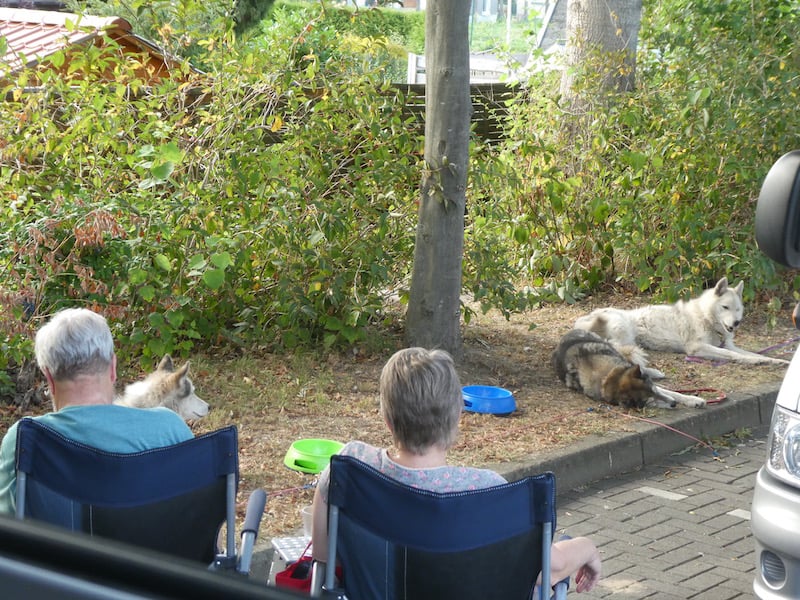 Die 3 (!) Huskies im Camper neben uns leiden auch unter der Hitze.