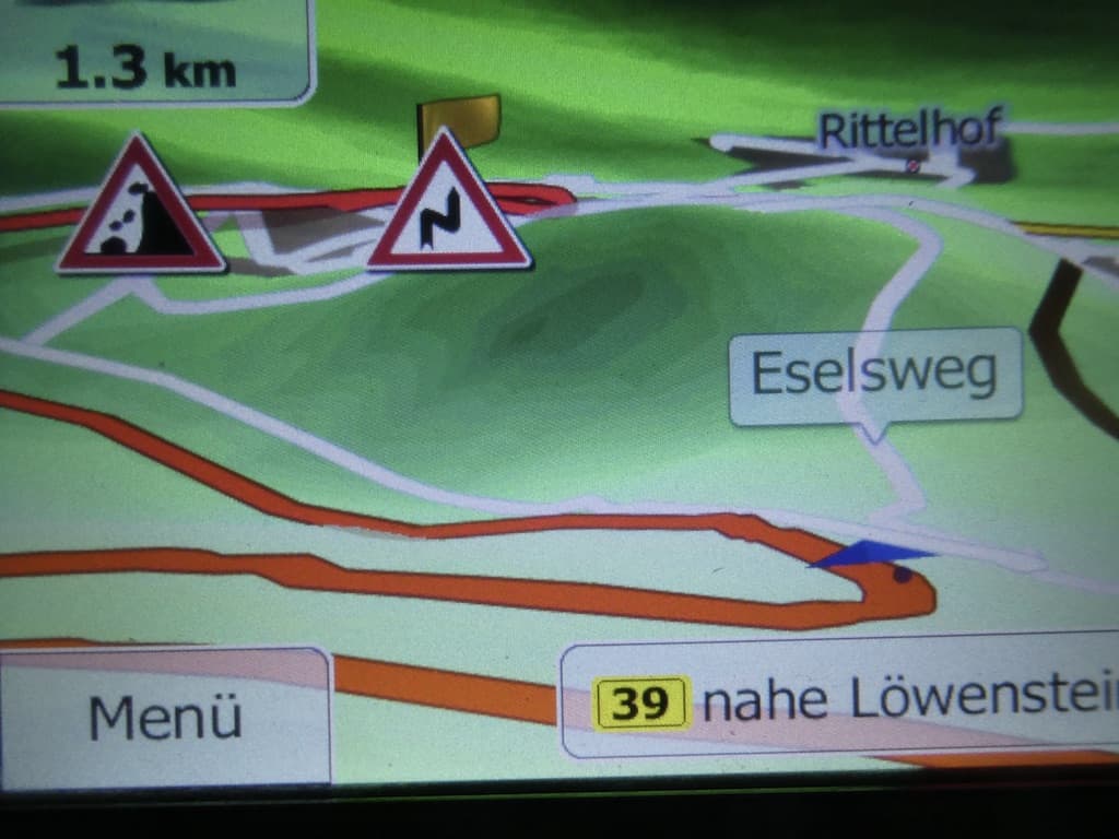 Zum Glück müssen wir diese Strasse mit 20% Gefälle nicht auch noch fahren.