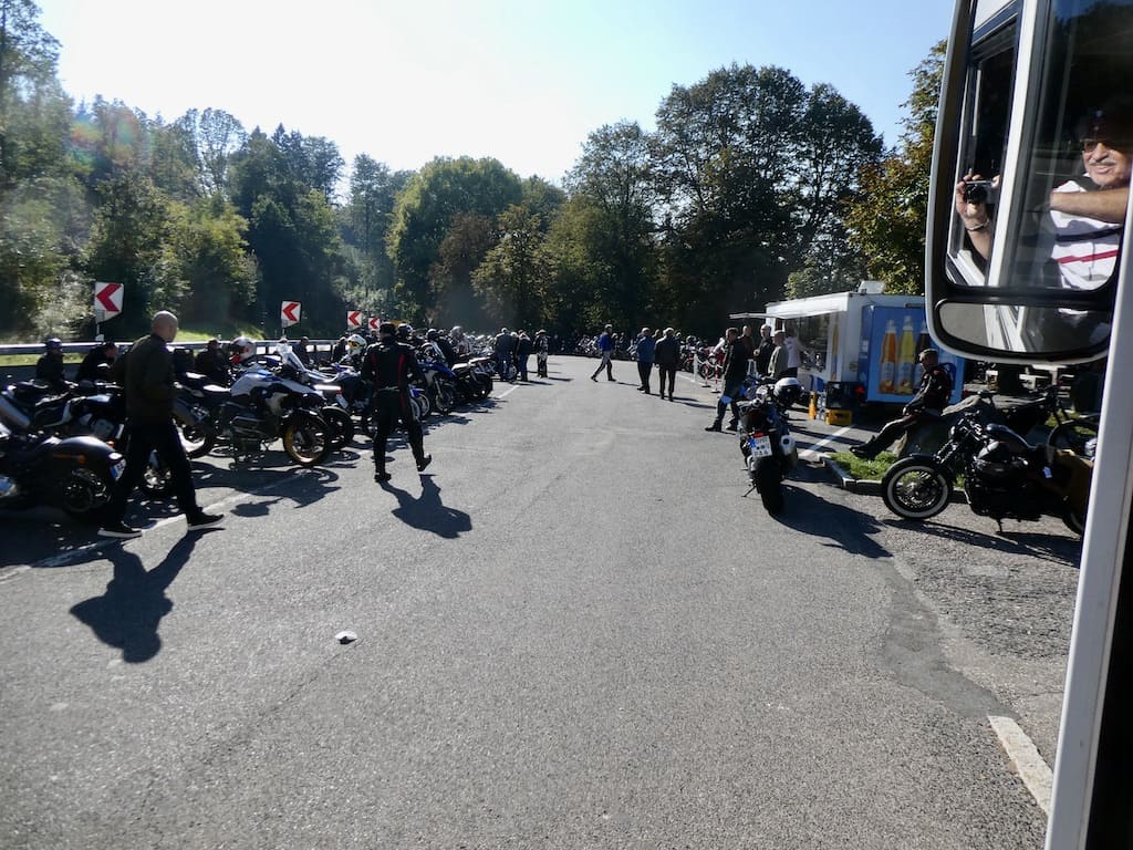 Unsere Fahr geht kurvenreich weiter. Das zieht Massen von Motorradfahrern an.
