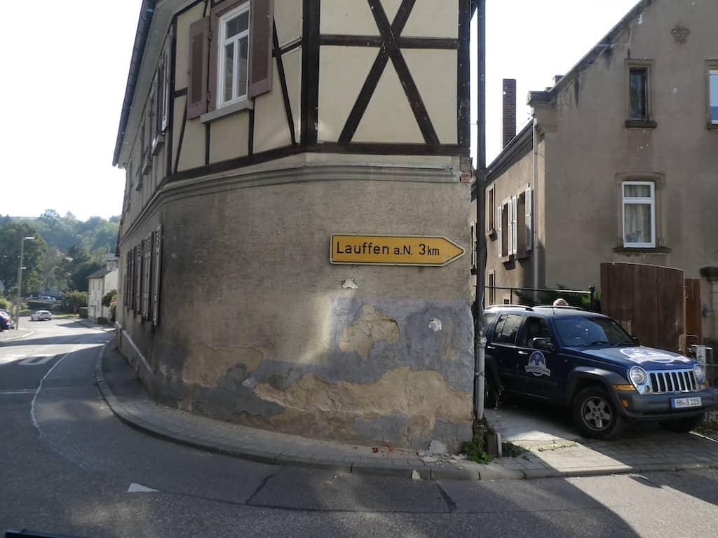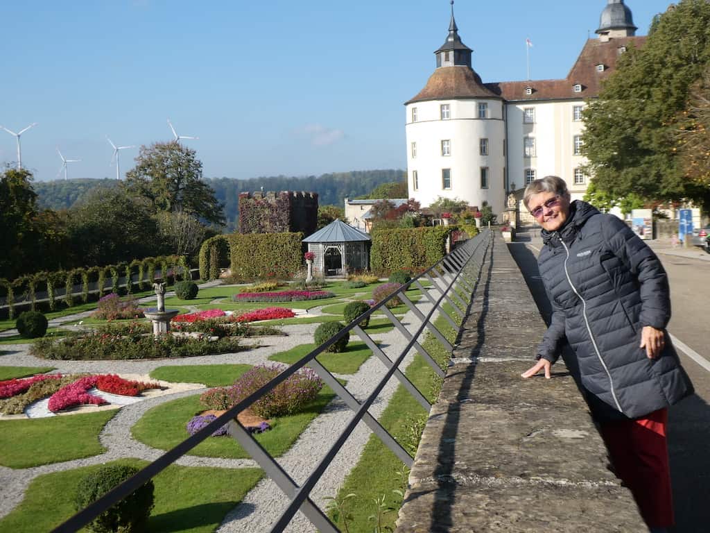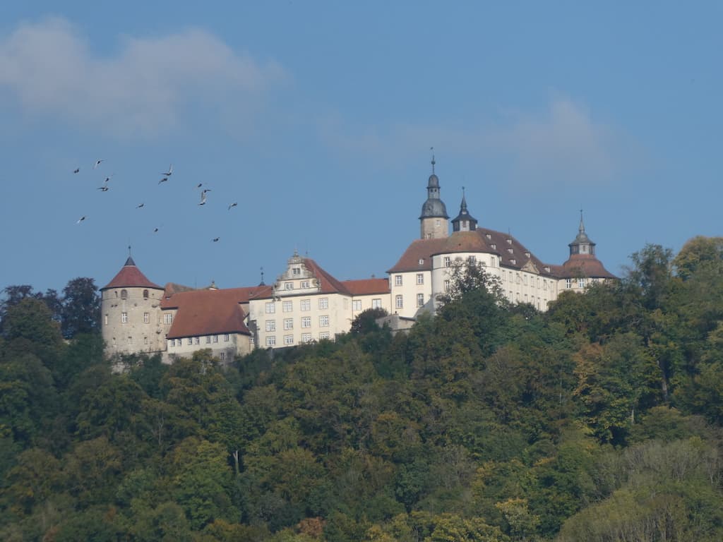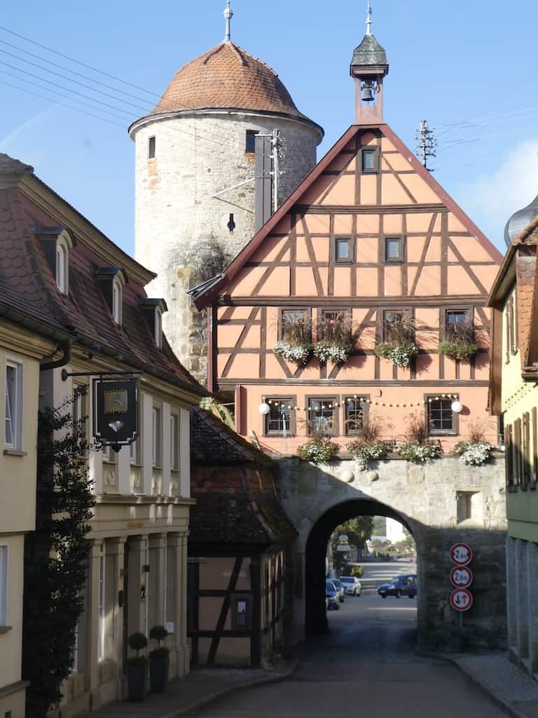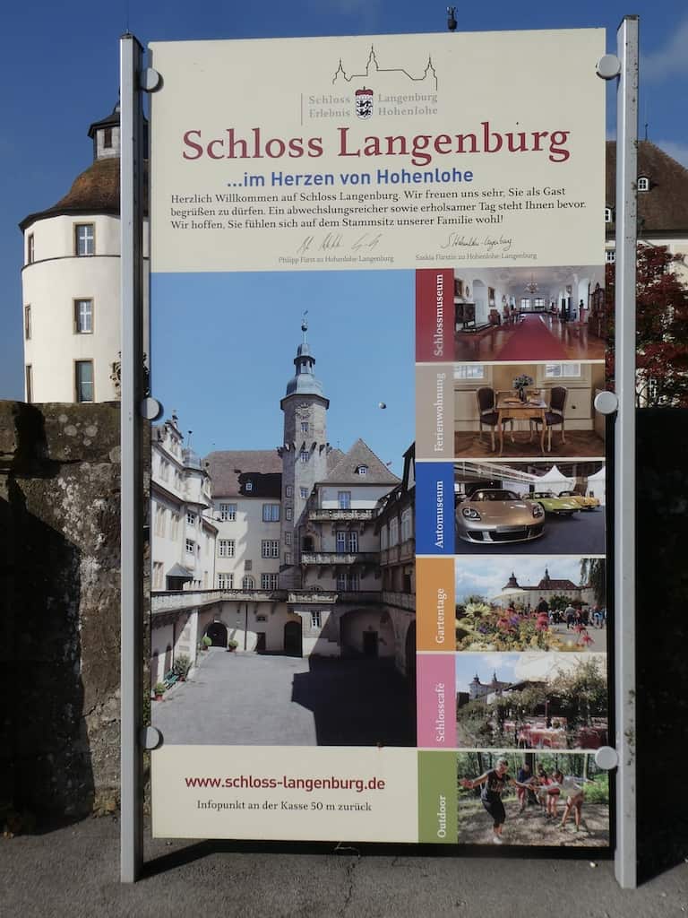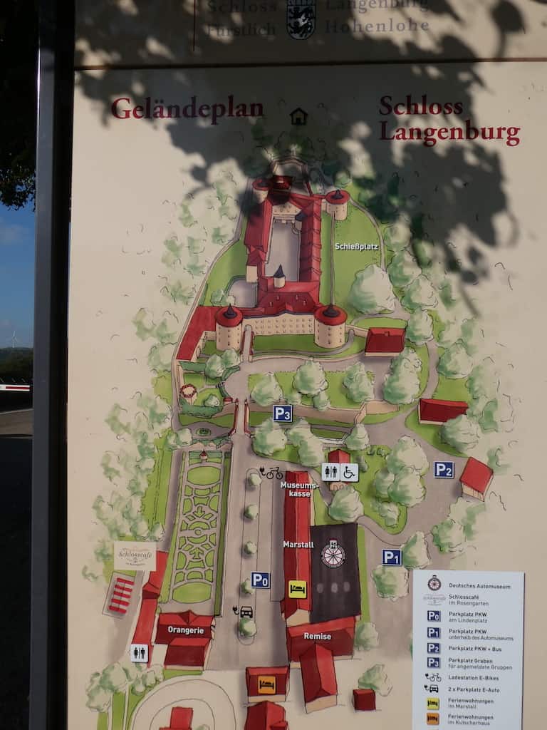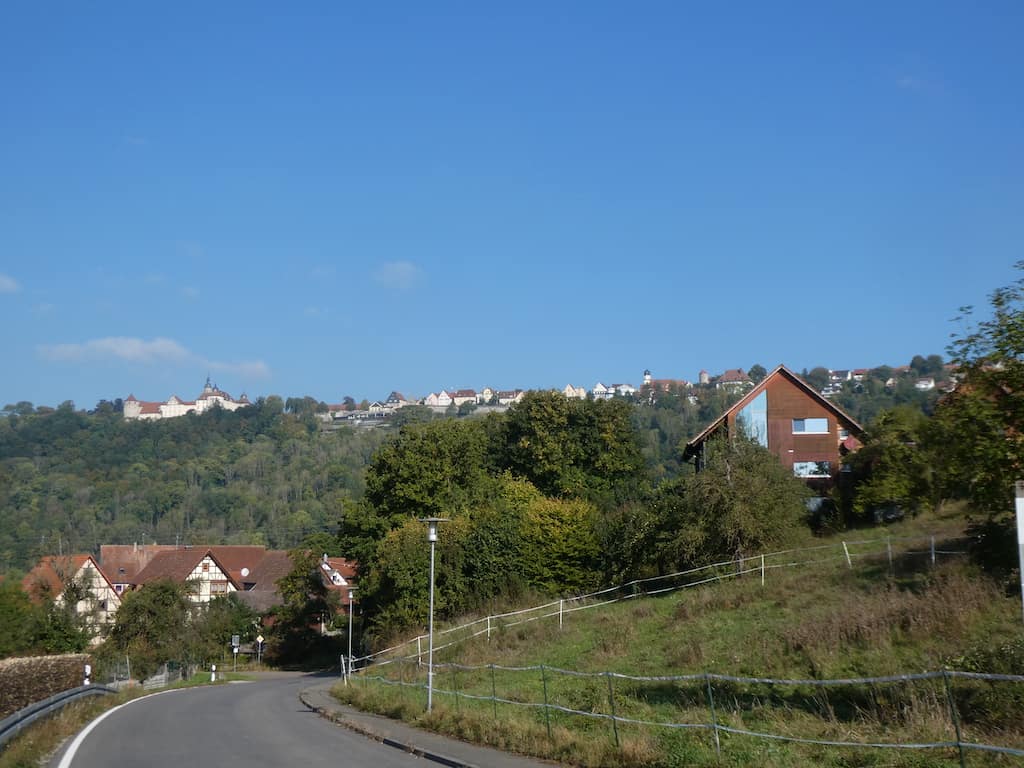 Zuerst wollen wir Langenburg anschauen. Nach etwa 2 Kilometern Fahrt sind wir vom Stellplatz beim Stadttor. Das ist aber zu klein für unser Gefährt. Um auf die andere Seite zu kommen, müssen wir einen Umweg von etwa 6 Kilometer fahren. Zuerst steil bergab ins Jagsttal und von der anderen Seite wieder hinauf.