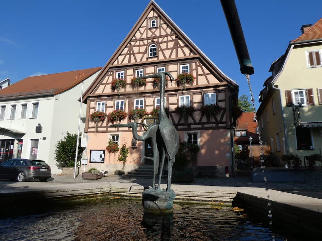 Wir finden einen Parkplatz beim Brunnen gegenüber vom Rathaus.