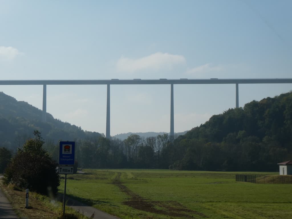 Die gewaltige Autobahnbrücke über das Tal der Kocher.