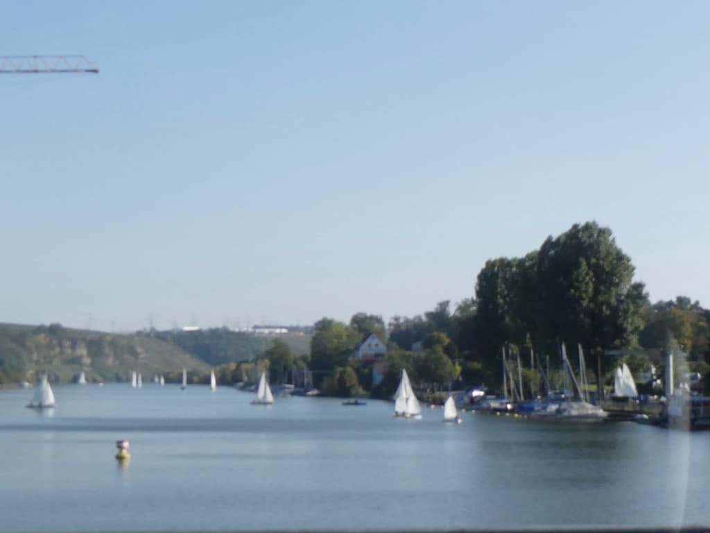Beim Stauwehr in Laufen überqueren wir den Neckar. Erstaunlich viele Segler sind hier auf dem Wasser.