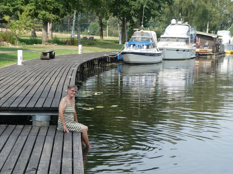 Renate sucht mittags etwas Abkühlung, wenigstens mit den Füssen im Wasser.