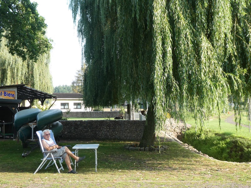 Leider weht kaum ein Lüftchen, da ist es unter hohen Bäumen angenehmer als unter unserer Markise am Mobi.