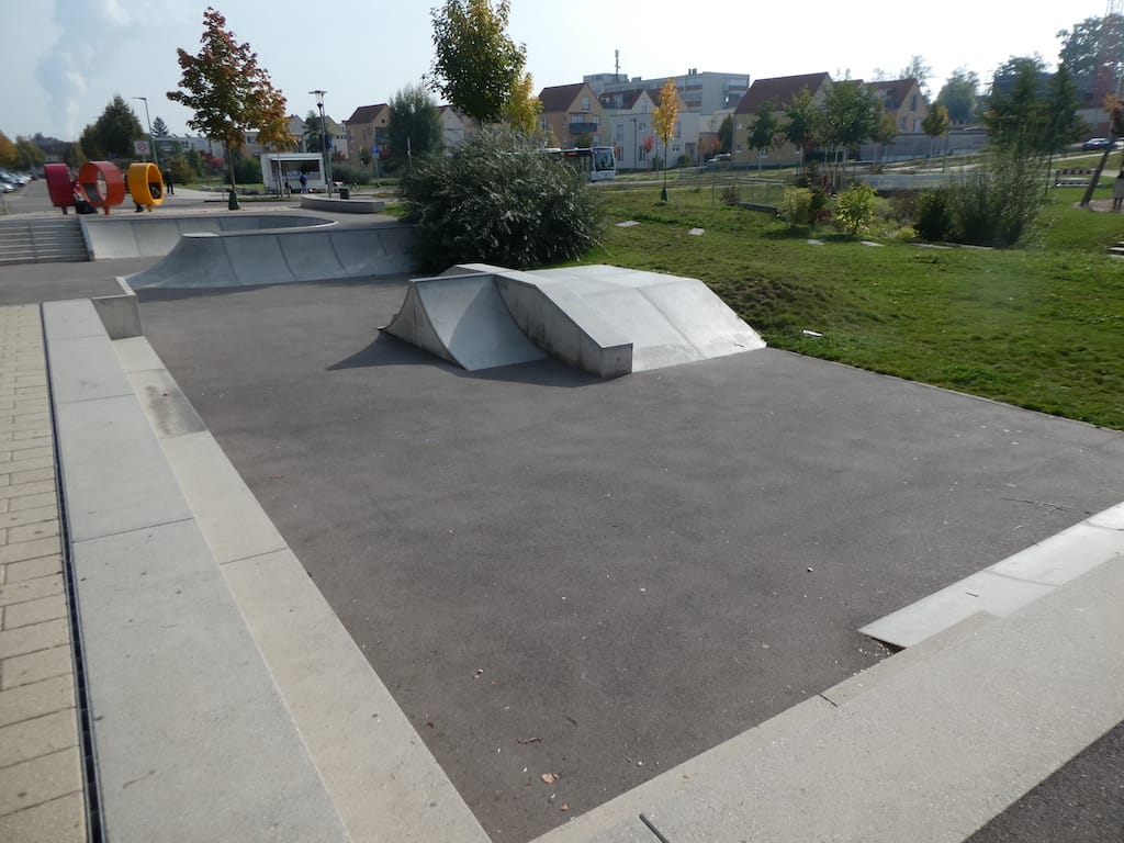 Auf dem Weg vom Wohnmobilstellplatz in die Stadt kommen wir zuerst an einer tollen Anlage für Skateboarder vorbei. Unsere Enkel Silvan und Levin könnten sich hier austoben.