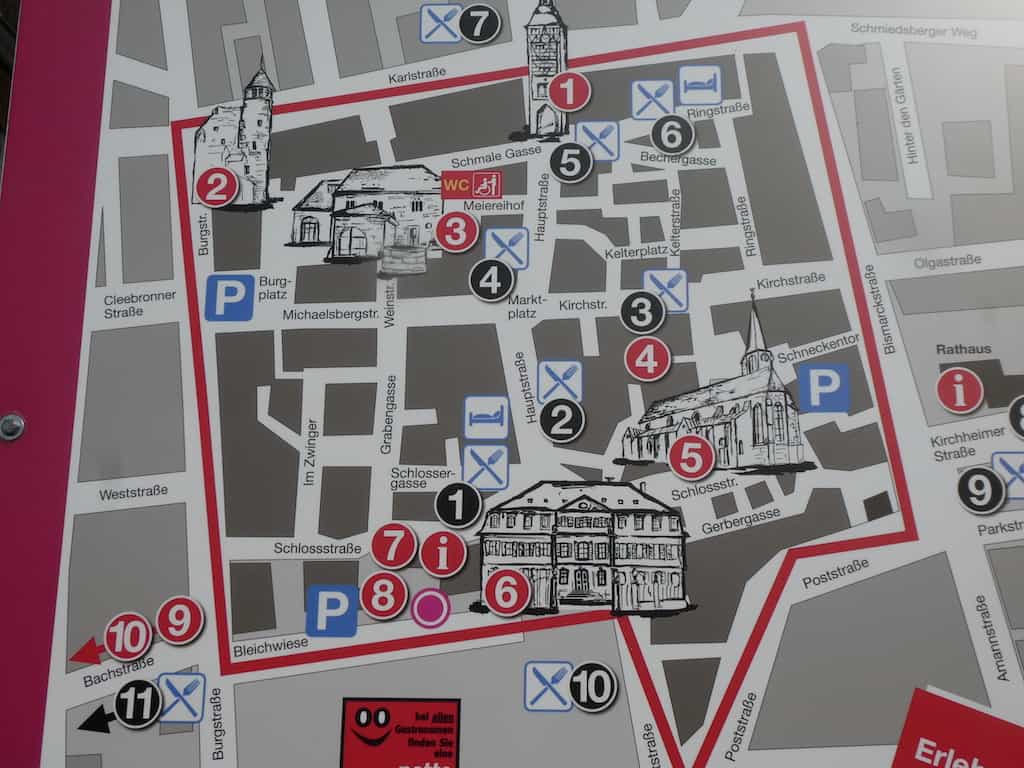 Wir folgen dem «Roten Faden» und werden an den meisten Sehenswürdigkeiten vorbeigeführt.