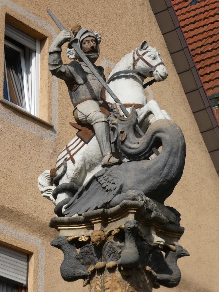 Der St. Georgbrunnen, geschaffen zu Ehren des Drachentöters