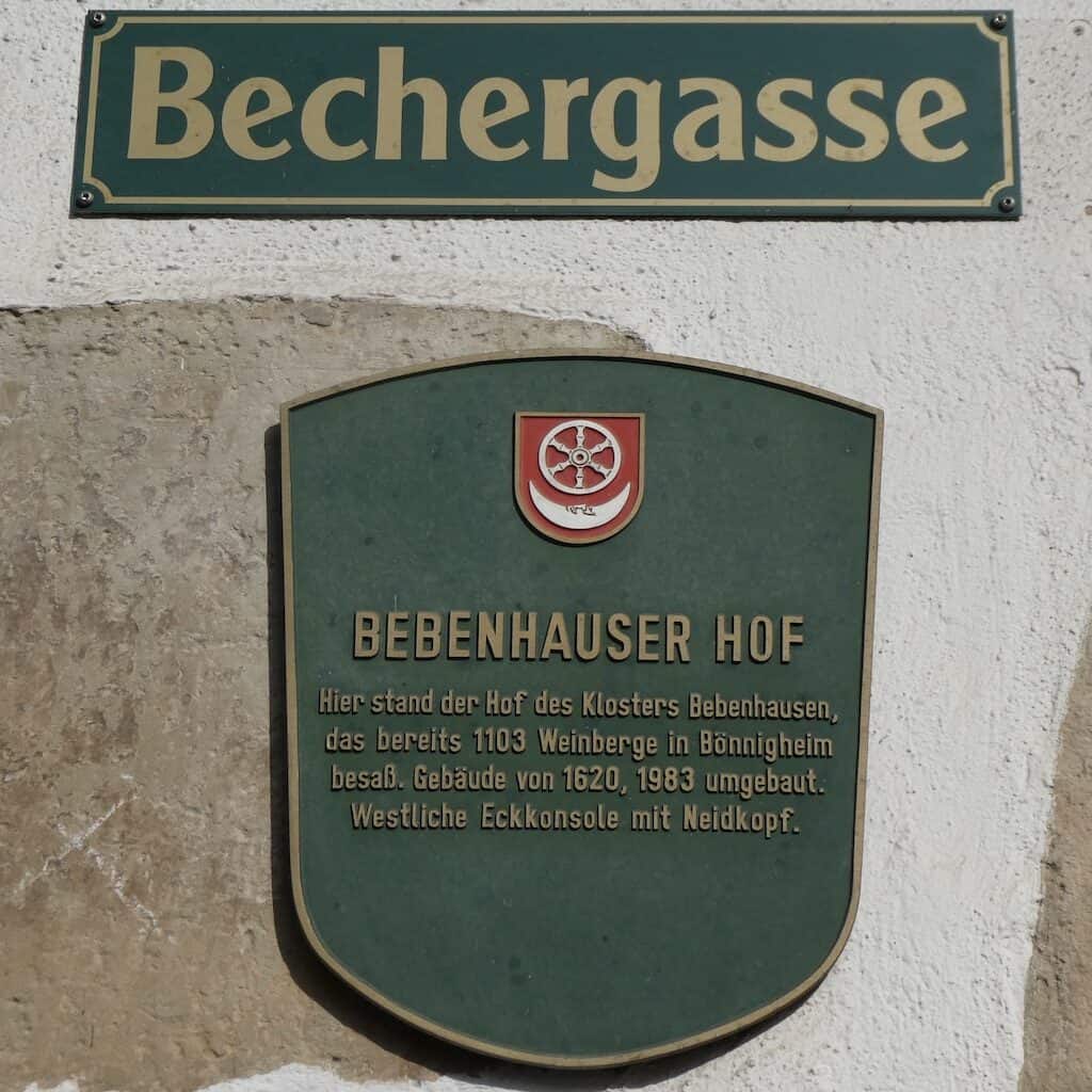 Heute wollen wir den Ort kennenlernen. 1284 wurden Bönnigheim die Stadtrechte verliehen. Die Wein- und Handelsstadt gehört zum „3B-Land“: Bönnigheim, Besigheim, Bietigheim-Bissingen. An den sonnigen Hängen wird heute hauptsächlich Lemberger kultiviert. Eine Württemberger Rarität, die nur an besten Lagen gedeiht. So verwundert es auch nicht, dass hier viele Weinkellereien, Brennereien und Weinlokale anzutreffen sind.