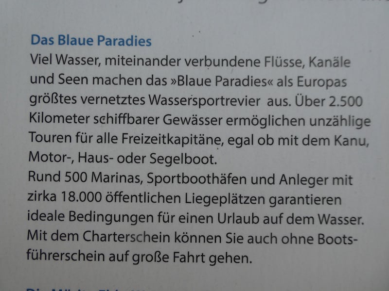 Wer hier liegt, ist in diesem Paradies jedoch gefangen, denn auch Richtung Müritz sind die Schleusen gesperrt.
