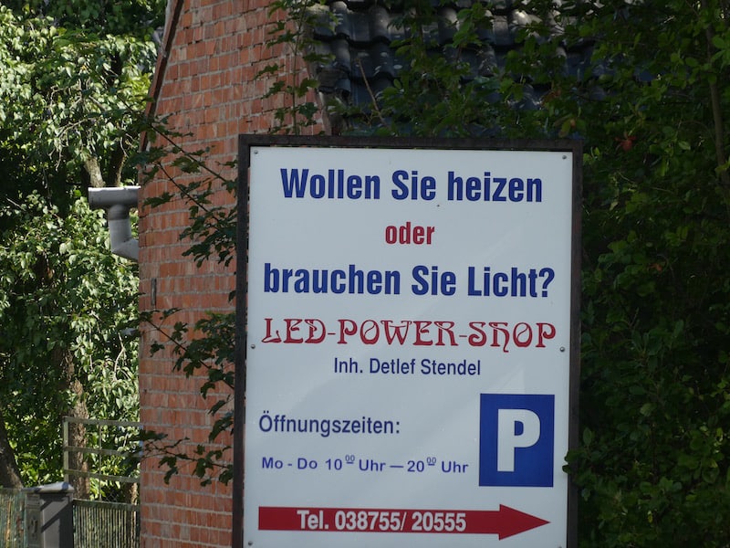 Da wir nun wieder einmal durch Eldena kommen, machen wir zuerst einen Besuch beim LED-Power-Shop und Detlef Stendel und seiner Frau. Wir können auch einen LED-Einbauspot in Reserve gebrauchen.
