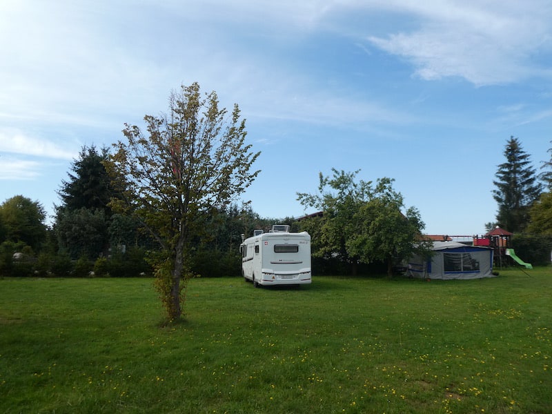 Es wird nachmittags noch richtig sonnig und heiss, sodass wir unsere Markise ausfahren. Der Schatten der Bäume ist aber noch angenehmer.
