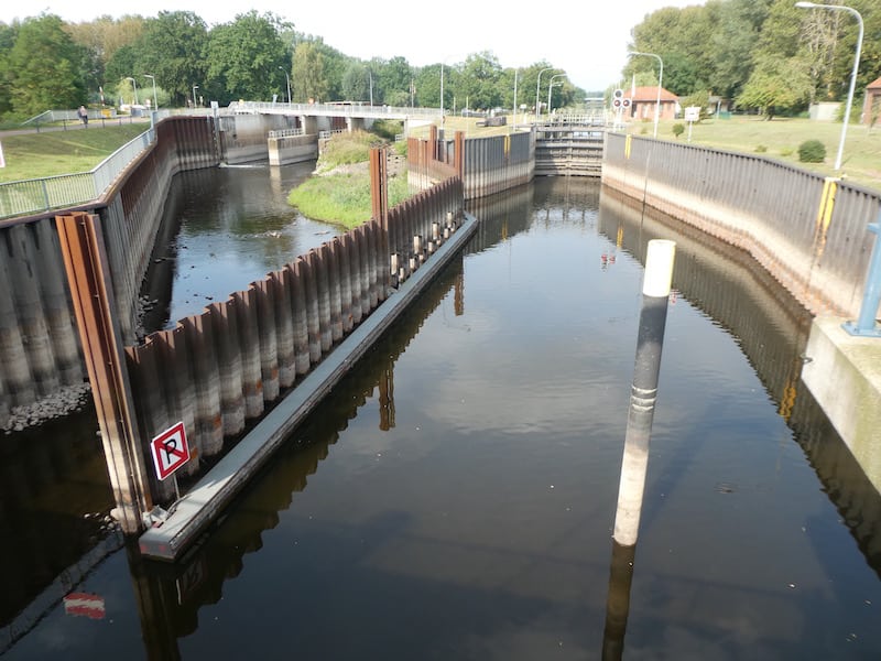 Wegen des niedrigen Wasserstandes der Elbe können die Schiffe aber in diesem, wie schon im letzten Sommer, nicht in und aus der Schleuse fahren.