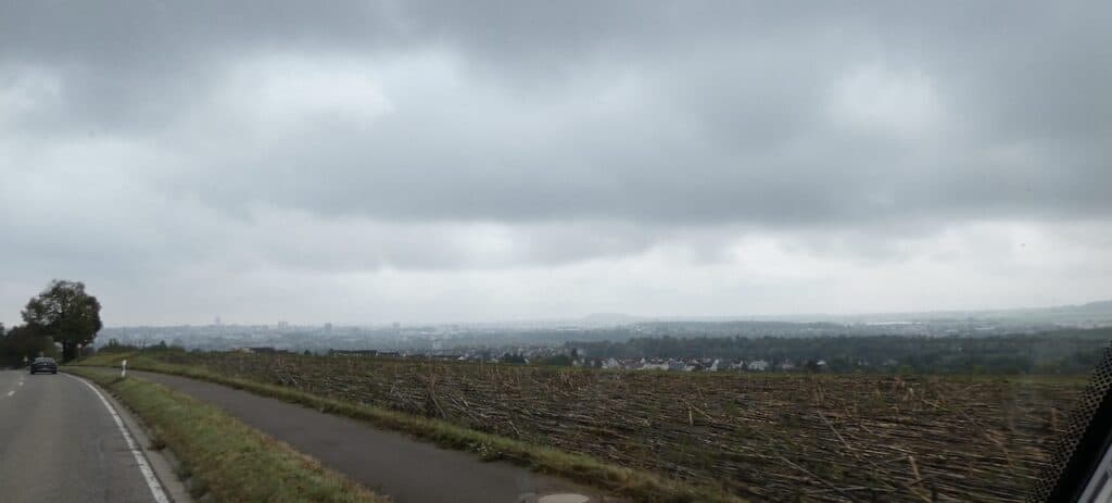 Morgens ist es nass. Bei regnerischer Wolkenstimmung fahren wir zuerst nach Ludwigsburg ins Breuningerland zum Shoppen. Als wir ohne nennenswerte Einkäufe wieder zum Mobi zurückkommen, regnet es immerhin nicht mehr. Ja, es zeigt sich sogar manchmal die Sonne.