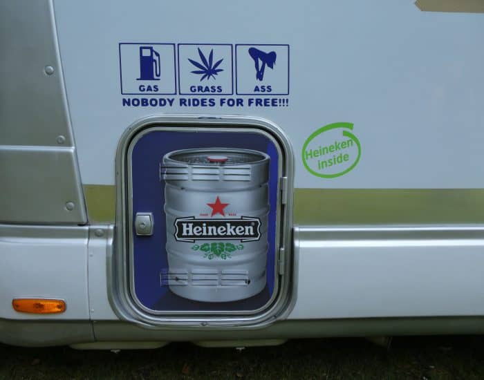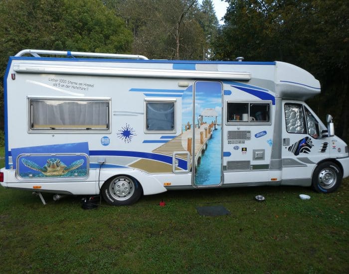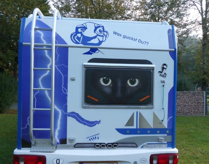 Ein unkonventionelles, aber nettes Paar, die ihr Fahrzeug recht auffallend dekoriert haben.