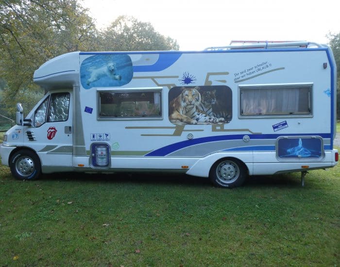 Nach kurzer Fahrt durch die schöne herbstliche Landschaft kommen wir zu unserem Stellplatz in Schwarzach am Wildpark.