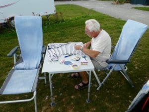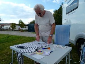 . . . in der Freiluftwerkstatt wird emsig gebastelt und gebügelt . . .