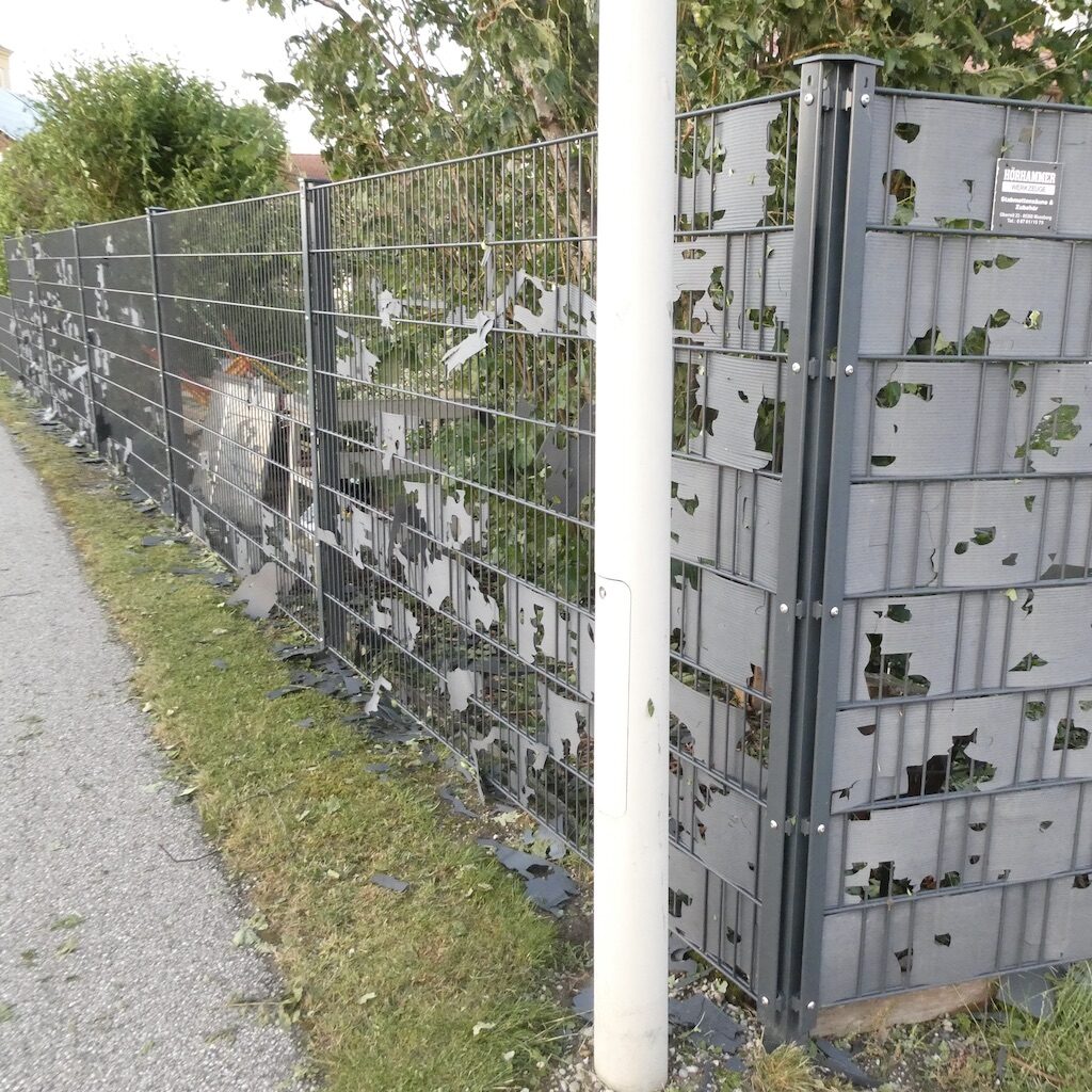 Bei der Nachbarin hat es den Sichtschutz am Zaun zerschlagen. Hier hat der Hagel noch mehr angerichtet.