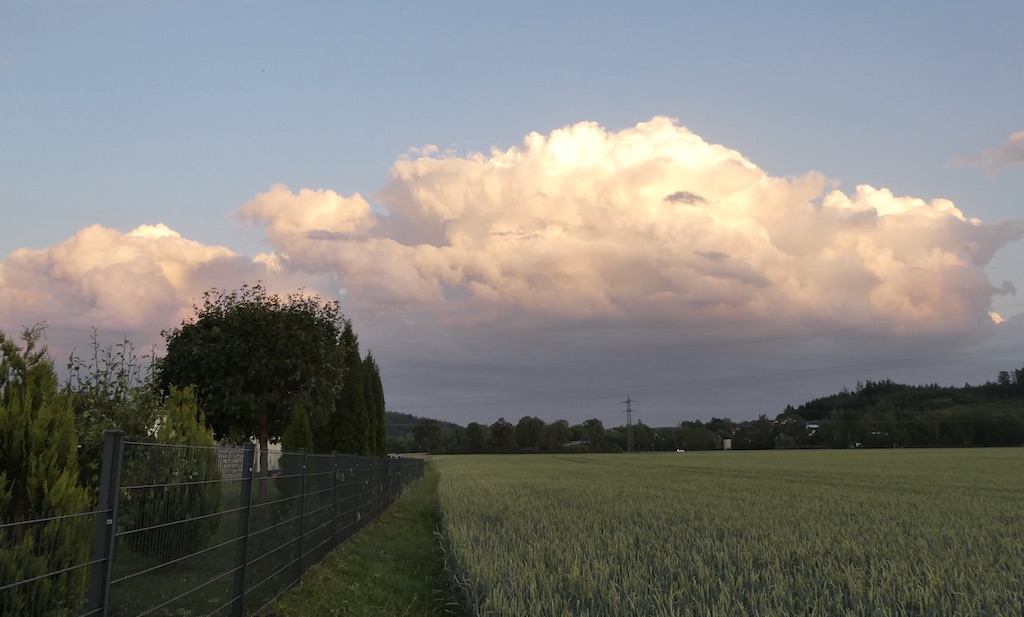 Wenn man nun den See und die Wolken so friedlich sieht, kann man die Wetterkapriolen kaum glauben. Das Gewitter hat schöne Abkühlung gebracht. Obwohl, – um 24 Uhr zeigt das Thermometer immer noch 20°