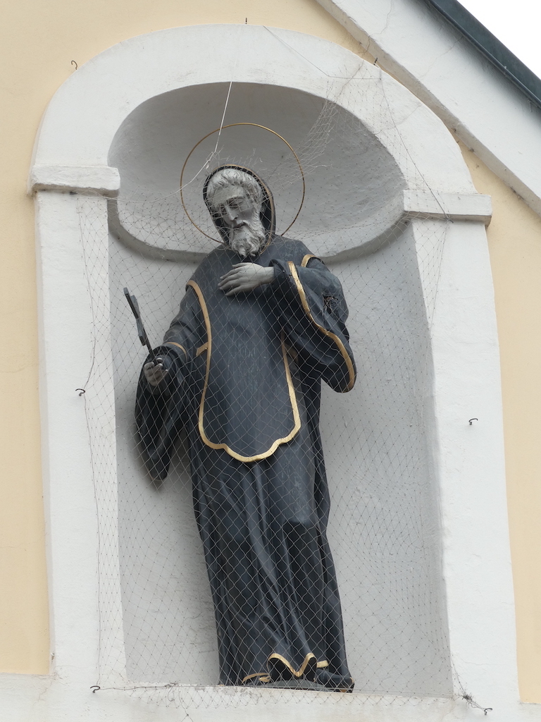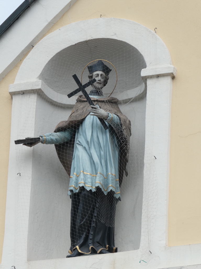 Gleich am Anfang unseres Rundgangs fällt uns eine Hausfassade mit zwei Heiligenfiguren auf. Wie wir erfahren, war dies aber immer ein Privathaus. Der kirchliche Segen kann ja nie schaden.