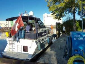 Grosser Abschied von Vreni und Jögge, nachdem sie hier noch Frischwasser ergänzt haben. Sie fahren weiter nach Zwolle.