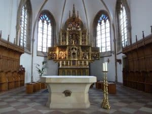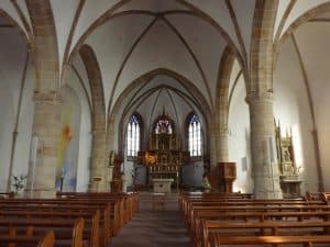 In der Kirche St. Vitus fällt uns die einwandfreie Akustik auf. Schon im Jahre 900 gab es einen Steinbau. Teile der späteren romanischen Basilika sind noch erhalten.