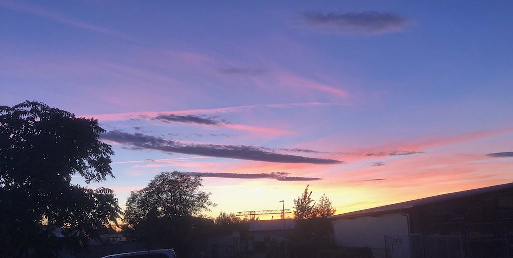 Wir haben für diese Route viel mehr Zeit gebraucht als geplant war. So hat der Campingladen, in dem wir noch etwas einkaufen wollten, schon geschlossen. Deshalb werden wir nun hier übernachten und nicht, wie eigentlich geplant 26 km weiter, auf einem Stellplatz. Ein prächtiger Abendhimmel wird uns auch noch präsentiert.