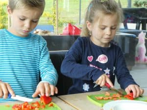 Man kann die Kleinen auch schon gut als Küchenhilfen einsetzen.