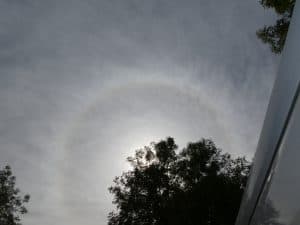 Durch die leichte und hohe Bewölkung bildete sich ein Halo um die Sonne. Da wird morgen wohl das Wetter ändern.