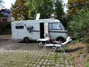 Wir geniessen die Nachmittagsstunden in der warmen Herbstsonne vor dem Mobi.