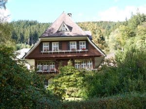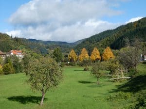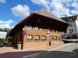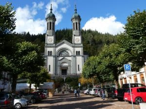 Vorbei an schmucken Schwarzwaldhäusern kommen wir zur erhöht liegenden Pfarrkirche „St. Johannes der Täufer“.