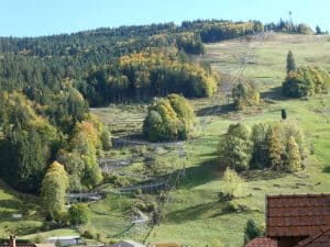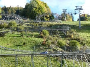Von dort sehen wir am gegenüberliegenden Hang einen Sessellift und eine Sommerrodelbahn. Das wollen wir uns genauer ansehen.