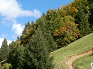 Wir erfreuen uns an der herbstlichen Landschaft, die besonders zur Geltung kommt, da die Sonne scheint.
