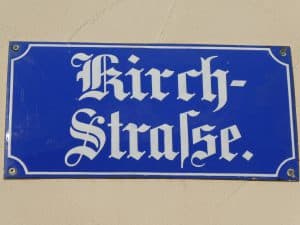 Auch hier gibt es noch alte Strassenschilder, die die Jungen kaum noch lesen können.