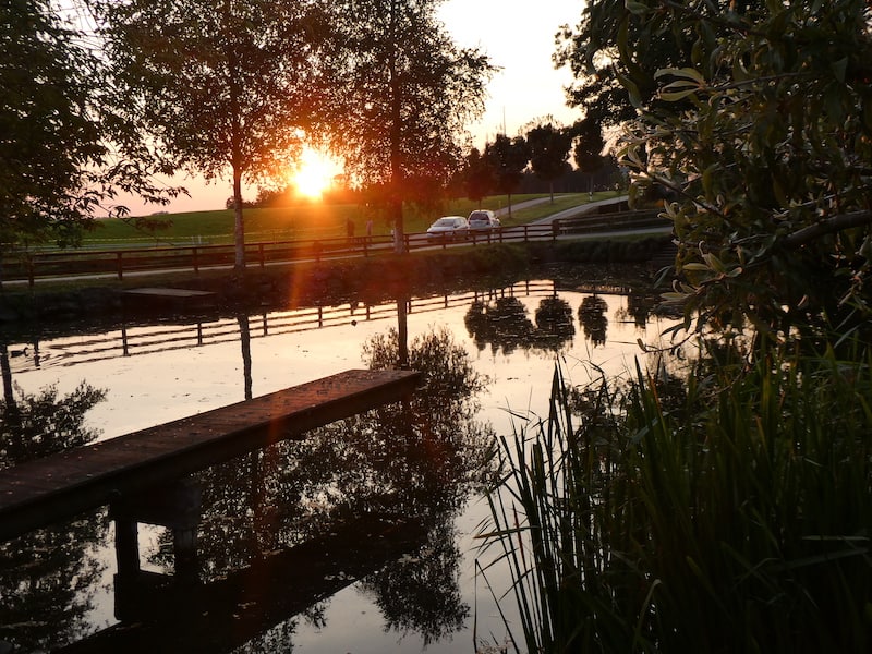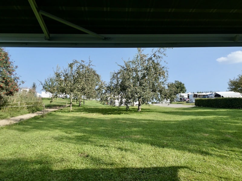 Die ländliche Umgebung gefällt uns sehr gut. Wir haben von unserem Sitzplatz einen wohltuenden Blick ins Grüne.