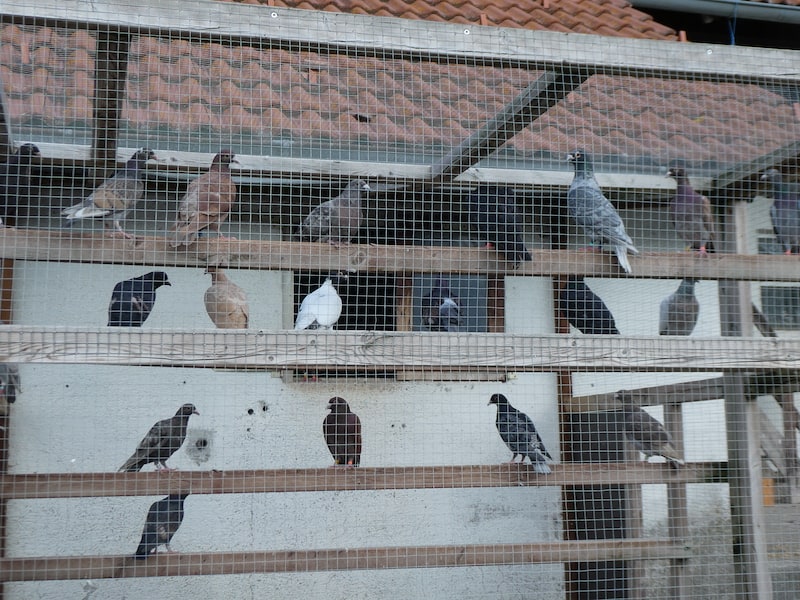 Der Sohn des Hauses züchtet Brieftauben. Hübsche Tiere sind dabei.