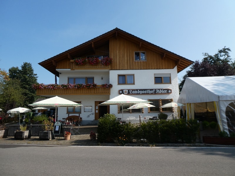 Auch wir fühlen uns sauwohl. Mittags essen wir im Landgasthof Adler, gleich neben den Stellplatz, ganz ausgezeichnet. Ansonsten geniessen wir einen schönen und ruhigen Sonntag. Mit Lesen und Quatschen mit den netten Nachbarn vergehen die Stunden im Flug. Michael schaut auch das F1-Autorennen.