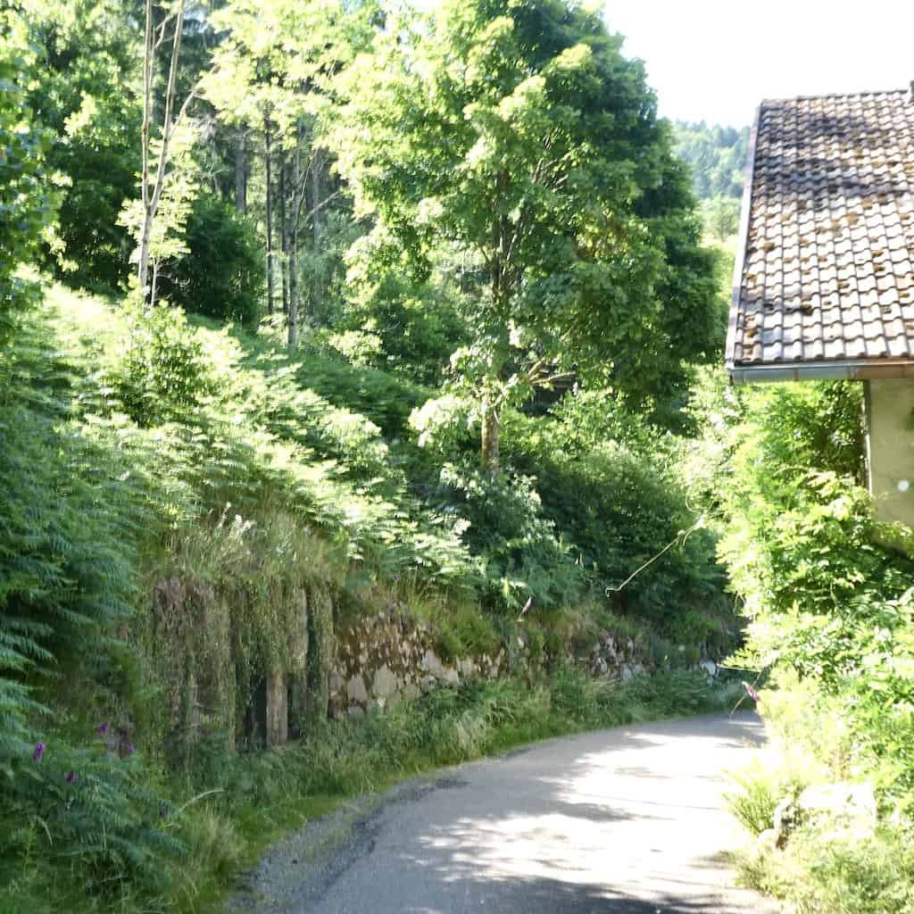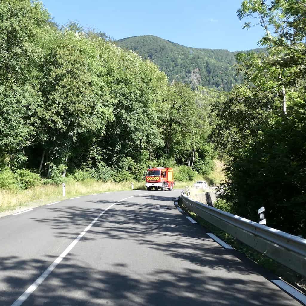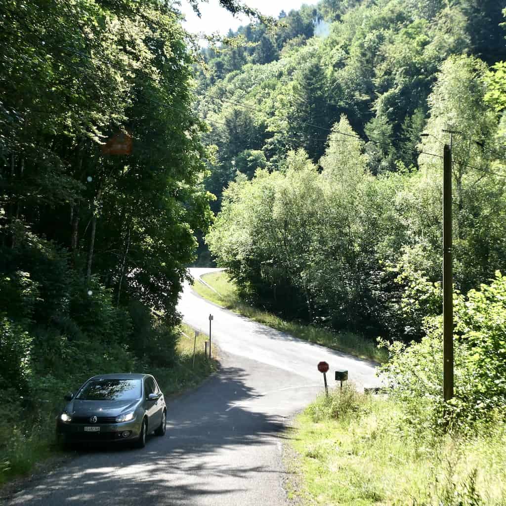 Es fahren laufend Autos hinauf auf den «Le Drument». Wir hoffen, dass uns keines entgegenkommt, wenn wir diese schmale Strasse hinunterfahren. Wir haben Glück. Das einzige Auto kam erst ganz unten und es wartete freundlicherweise bis wir gekreuzt hatten.